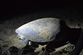 Ze legt haar eieren op het strand in een diepe put. Nadien